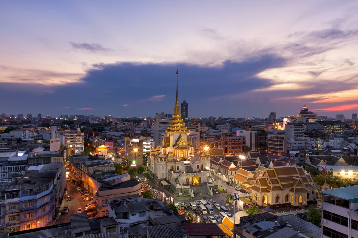 Arrive at MRT Wat Mangkon around 17:00 and drop into the golden-buddha temple (Wat Traimit) first — the 5.5-ton Sukhothai-era Buddha is worth the ticket, and the cool hall is a mercy before the heat of the street. Double back north to Wat Mangkon Kamalawat, the Chinese temple that gives the station its name — the smell of sandalwood will stay in your hair.